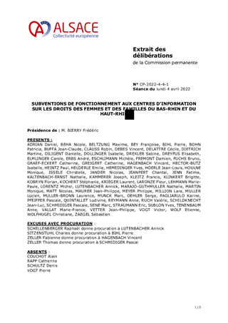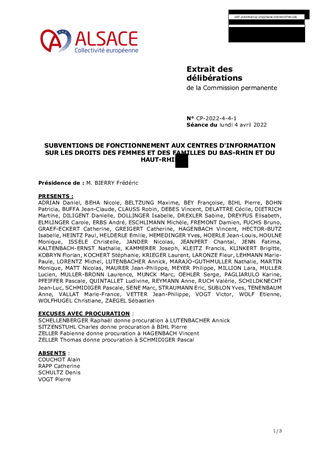 SUBVENTIONS DE FONCTIONNEMENT AUX CENTRES D'INFORMATION SUR LES DROITS DES FEMMES ET DES FAMILLES DU BAS-RHIN ET DU HAUT-RHIN