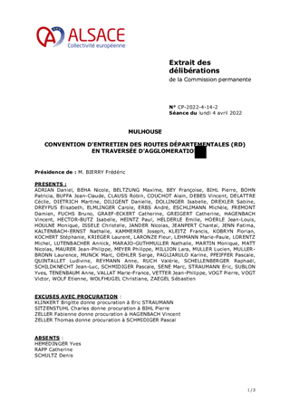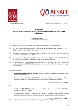 MULHOUSE CONVENTION D'ENTRETIEN DES ROUTES DÉPARTEMENTALES (RD) EN TRAVERSÉE D'AGGLOMERATION