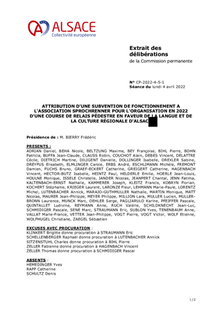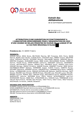 ATTRIBUTION D'UNE SUBVENTION DE FONCTIONNEMENT A L'ASSOCIATION SPROCHRENNER POUR L'ORGANISATION EN 2022 D'UNE COURSE DE RELAIS PÉDESTRE EN FAVEUR DE LA LANGUE ET DE LA CULTURE RÉGIONALE D'ALSACE