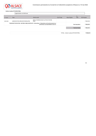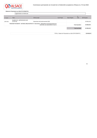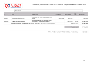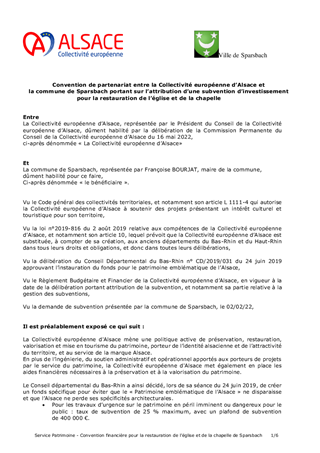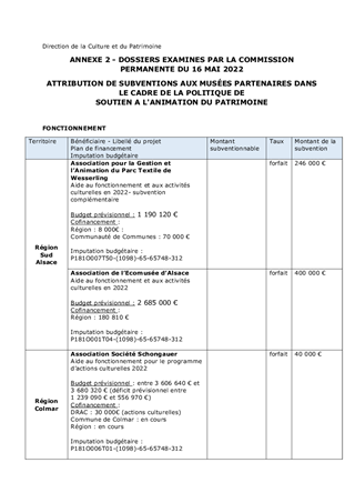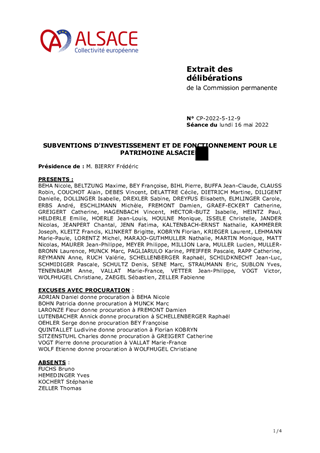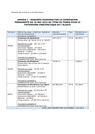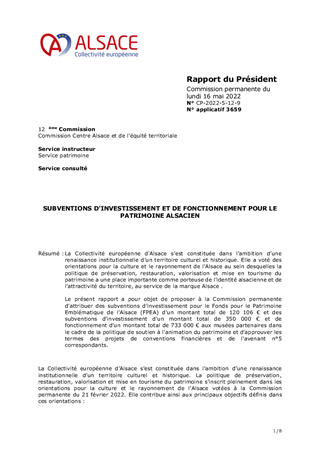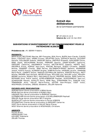 SUBVENTIONS D'INVESTISSEMENT ET DE FONCTIONNEMENT POUR LE PATRIMOINE ALSACIEN