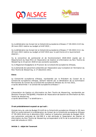 Avenant n°5 Association pour la Gestion et l'animation Parc Textile de Wesserling 16 mai -