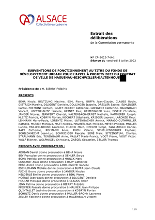 SUBVENTIONS DE FONCTIONNEMENT AU TITRE DU FONDS DE DÉVELOPPEMENT URBAIN POUR L'APPEL À PROJETS 2022 DU CONTRAT DE VILLE DE HAGUENAU-BISCHWILLER-KALTENHOUSE
