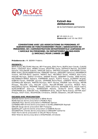 CONVENTIONS AVEC LES ASSOCIATIONS DU PERSONNEL ET SUBVENTIONS DE FONCTIONNEMENT POUR L'ASSOCIATION DU PERSONNEL DE L'ADMINISTRATION DEPARTEMENTALE (ASPAD68) ET L'AMICALE DU PERSONNEL DU DEPARTEMENT DU BAS-RHIN (L'AMICALE) POUR L'ANNEE 2022