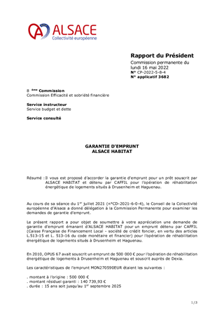 GARANTIE D'EMPRUNT ALSACE HABITAT