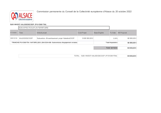 SUBVENTION D'INVESTISSEMENT AU DÉVELOPPEMENT DU PROJET KALEIDOSCOOP