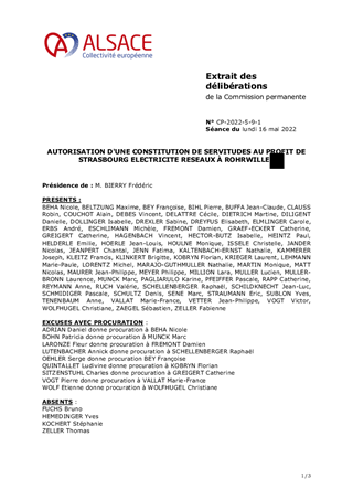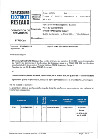 AUTORISATION D'UNE CONSTITUTION DE SERVITUDES AU PROFIT DE STRASBOURG ELECTRICITE RESEAUX À ROHRWILLER