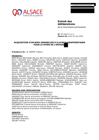 ACQUISITION D'UN BIEN IMMOBILIER À ILLKIRCH-GRAFFENSTADEN POUR LE FOYER DE L'ENFANCE