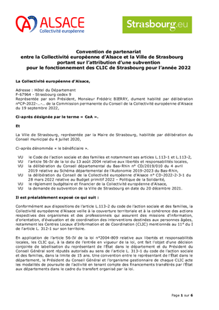CONVENTION DE PARTENARIAT ENTRE LA COLLECTIVITÉ EUROPÉENNE D'ALSACE ET LA VILLE DE STRASBOURG POUR LE FONCTIONNEMENT DES CENTRES LOCAUX D'INFORMATION ET DE COORDINATION
