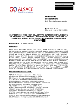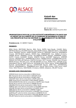 PROPOSITION D'AVIS DE LA COLLECTIVITÉ EUROPÉENNE D'ALSACE SUR LE PROJET DE PLU ARRÊTÉ DE LA COMMUNE DE BOURBACH-LE-BAS ET LES PROJETS DE PLUI DU SECTEUR ILL ET GERSBACH ET DU SECTEUR D'ILLFURTH