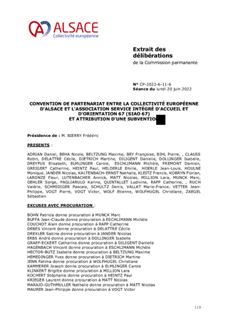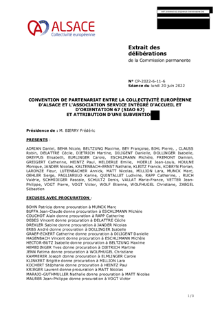 CONVENTION DE PARTENARIAT ENTRE LA COLLECTIVITÉ EUROPÉENNE D'ALSACE ET L'ASSOCIATION SERVICE INTÉGRÉ D'ACCUEIL ET D'ORIENTATION 67 (SIAO 67) ET ATTRIBUTION D'UNE SUBVENTION