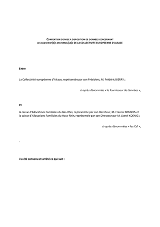 CONVENTION DE MISE A DISPOSITION DE DONNÉES CONCERNANT LES ASSISTANTS MATERNELS DES DÉPARTEMENTS DU BAS-RHIN ET DU HAUT-RHIN