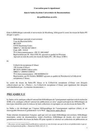 CONVENTION AVEC LA BIBLIOTHEQUE NATIONALE ET UNIVERSITAIRE HEBERGEANT LE CENTRE REGIONAL ALSACE DU SYSTÈME UNIVERSITAIRE DE DOCUMENTATION