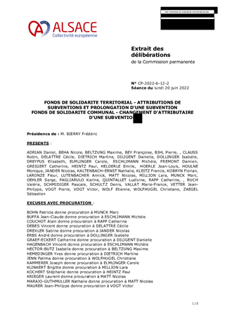 FONDS DE SOLIDARITE TERRITORIAL - ATTRIBUTIONS DE SUBVENTIONS ET PROLONGATION D'UNE SUBVENTION FONDS DE SOLIDARITE COMMUNAL - CHANGEMENT D'ATTRIBUTAIRE D'UNE SUBVENTION