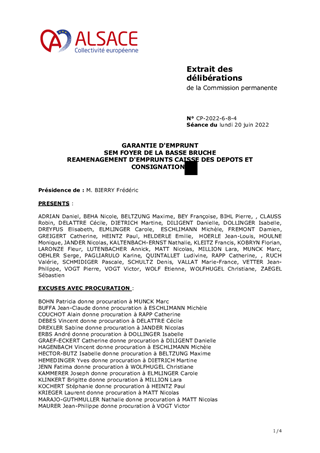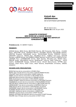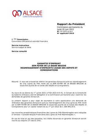 Il vous est proposé de réitérer les garanties d’emprunt suite au réaménagement de cinq Lignes du Prêt mené par la SEM FOYER DE LA BASSE BRUCHE et souscrites auprès de la Caisse des Dépôts et Consignations.