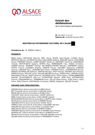 SOUTIEN AU PATRIMOINE CULTUREL DE L'ALSACE
