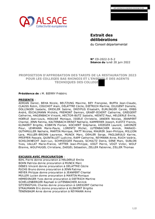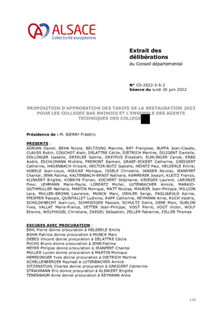 PROPOSITION D'APPROBATION DES TARIFS DE LA RESTAURATION 2023 POUR LES COLLEGES BAS RHINOIS ET L'ENSEMBLE DES AGENTS TECHNIQUES DES COLLEGES