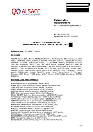 TRION-climate, association fondée en 2015 et forte de près de 100 membres, a en charge la mise en oeuvre de la stratégie sur le climat et l'énergie de la Conférence franco-germano-suisse du Rhin supérieur. Ce rapport a pour objet d'accorder, pour l'année 2022, le soutien de la Collectivité européenne d'Alsace à TRION-climate prévu par la convention pluri-annuelle et multi-partenariale qui lie la Collectivité européenne d'Alsace à cette association sur la période du 1er juillet 2021 au 31 décembre 2024. Il est proposé d'attribuer une subvention de fonctionnement de 4 000 € pour les actions de TRION-climate en faveur de la transition énergétique.