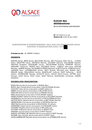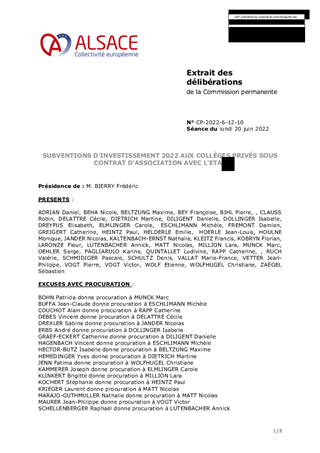 SUBVENTIONS D'INVESTISSEMENT 2022 AUX COLLÈGES PRIVÉS SOUS CONTRAT D'ASSOCIATION AVEC L'ETAT