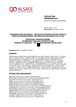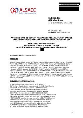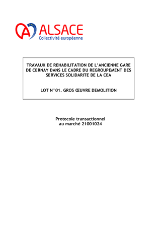 ANCIENNE GARE DE CERNAY - TRAVAUX DE REHABILITATION DANS LE CADRE DU REGROUPEMENT DES SERVICES SOLIDARITE DE LA CEA PROTOCOLE TRANSACTIONNEL ENTREPRISE FORALEST MAURUTTO SAS MARCHÉ N°21001024 - LOT 01 GROS OEUVRE DÉMOLITION