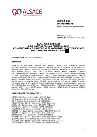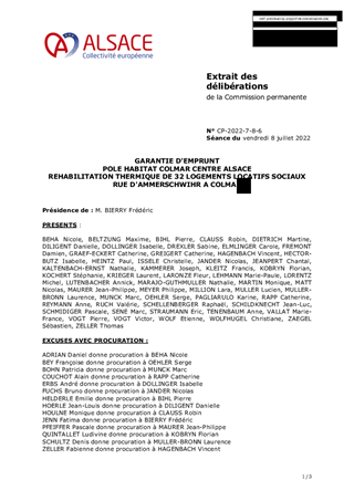 GARANTIE D'EMPRUNT POLE HABITAT COLMAR CENTRE ALSACE REHABILITATION THERMIQUE DE 32 LOGEMENTS LOCATIFS SOCIAUX RUE D'AMMERSCHWIHR A COLMAR