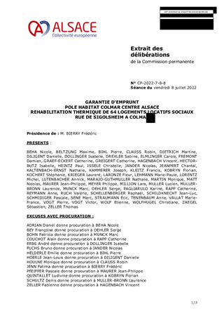 GARANTIE D'EMPRUNT POLE HABITAT COLMAR CENTRE ALSACE REHABILITATION THERMIQUE DE 64 LOGEMENTS LOCATIFS SOCIAUX RUE DE SIGOLSHEIM A COLMAR