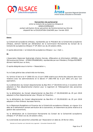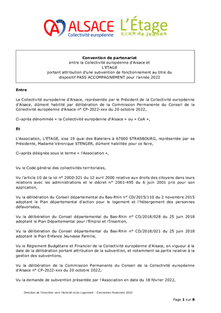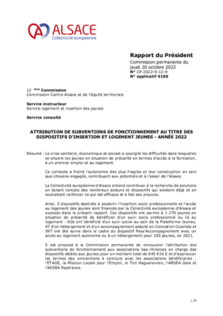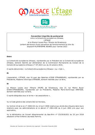 La crise sanitaire, économique et sociale a souligné les difficultés dans lesquelles se situent les jeunes en situation de précarité en termes d’accès à la formation, à un premier emploi et au logement. Ce contexte a freiné l’autonomie des plus fragiles et leur construction en tant que citoyens engagés, contribuant aux potentiels et à l’essor de l’Alsace. La Collectivité européenne d'Alsace entend contribuer à la recherche de solutions en tenant compte des nombreux acteurs et dispositifs qui existent déjà et en souhaitant renforcer ce qui est efficace et a fait ses preuves. Ainsi, 3 dispositifs destinés à soutenir l’insertion socio professionnelle et l’accès au logement des jeunes sont financés par la Collectivité européenne d'Alsace et exposés dans le présent rapport. Ces dispositifs ont permis à 1 270 jeunes en situation de précarité de bénéficier d’un suivi socio professionnel ou lié au logement : 826 ont bénéficié d'un suivi social au sein de la Plateforme Jeunes, 47 d’un hébergement et d’un accompagnement adapté en Colocation Coachée et 397 ont été suivis dans le cadre du dispositif Pass'Accompagnement avec un accès au logement autonome ou à un hébergement pour 105 jeunes, en 2021. Il est proposé à la Commission permanente de renouveler l’attribution des subventions de fonctionnement aux associations bas-rhinoises en charge des dispositifs dédiés aux jeunes pour un montant total de 645 616 € et d’approuver les termes des conventions à conclure avec les associations bénéficiaires : l’ETAGE, la Mission Locale pour l’Emploi, le Toit Haguenovien, l’ARSEA Gala et l’ARSEA Espérance.