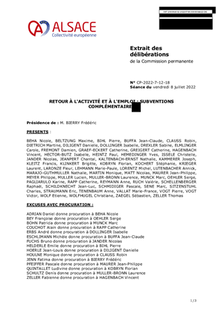 RETOUR À L'ACTIVITÉ ET À L'EMPLOI : SUBVENTIONS COMPLÉMENTAIRES