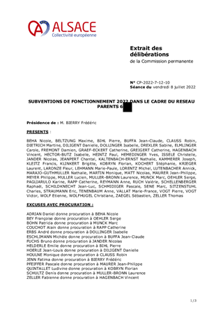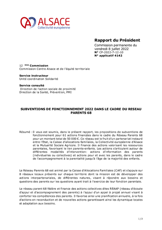 SUBVENTIONS DE FONCTIONNEMENT 2022 DANS LE CADRE DU RESEAU PARENTS 68