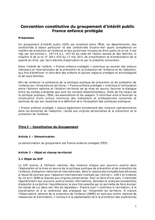 SIGNATURE DE LA CONVENTION CONSTITUTIVE DU GROUPEMENT D'INTERET PUBLIC "FRANCE ENFANCE PROTEGEE"