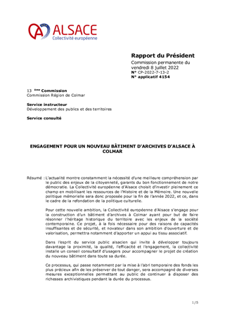 ENGAGEMENT POUR UN NOUVEAU BÂTIMENT D'ARCHIVES D'ALSACE À COLMAR