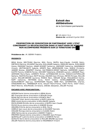 PROPOSITION DE CONVENTION DE PARTENARIAT AVEC L'ETAT CONCERNANT LA RELOCALISATION DANS LE HAUT-RHIN DE MINEURS NON ACCOMPAGNES PRÉSENTS SUR LE TERRITOIRE GREC