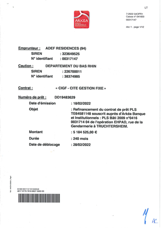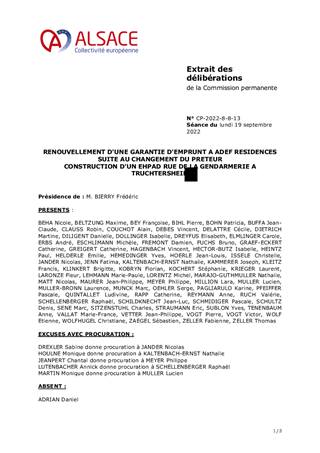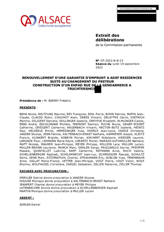 RENOUVELLEMENT D'UNE GARANTIE D'EMPRUNT A ADEF RESIDENCES SUITE AU CHANGEMENT DU PRETEUR CONSTRUCTION D'UN EHPAD RUE DE LA GENDARMERIE A TRUCHTERSHEIM