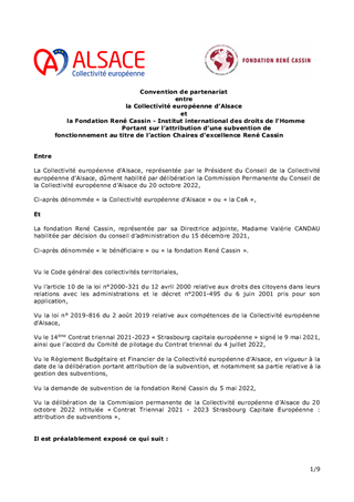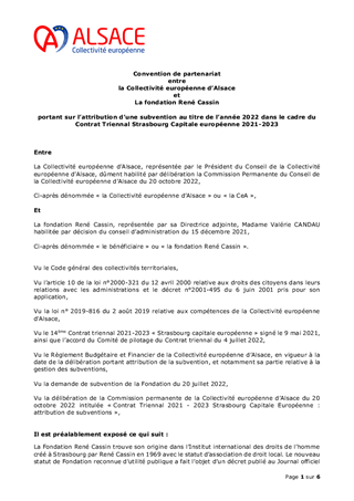 Convention Fondation René Cassin - CeA fonctionnement 2022 -