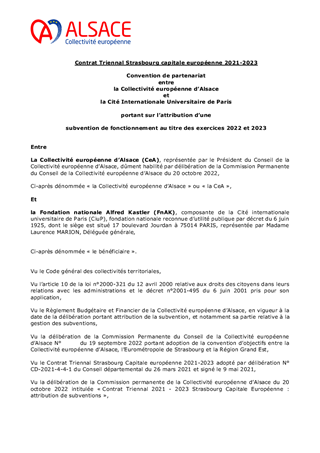 CONTRAT TRIENNAL 2021 - 2023 STRASBOURG CAPITALE EUROPÉENNE : ATTRIBUTION DE SUBVENTIONS