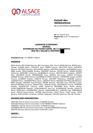 GARANTIE D'EMPRUNT DOMIAL EXTENSION DU FOYER CASTEL DE 3 LOGEMENTS RUE DE L'EGLISE A CHATENOIS