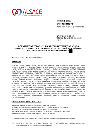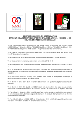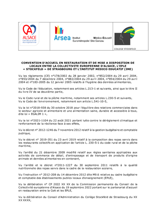 CONVENTIONS D'ACCUEIL EN RESTAURATION ET DE MISE A DISPOSITION DE LOCAUX ENTRE LA COLLECTIVITÉ EUROPÉENNE D'ALSACE, LES EPLE ET DES PARTENAIRES