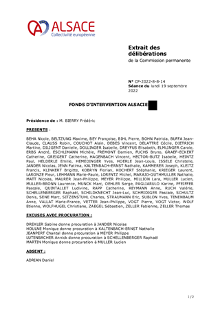 Le présent rapport a pour objet d'approuver l'attribution des subventions de fonctionnement accordées au titre du Fonds d'Intervention Alsacien, selon la liste détaillée en annexe.