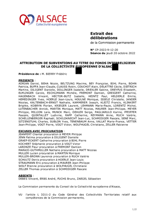 ATTRIBUTION DE SUBVENTIONS AU TITRE DU FONDS INTERRELIGIEUX DE LA COLLECTIVITE EUROPEENNE D'ALSACE