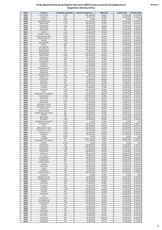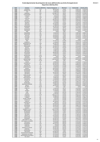 FONDS DÉPARTEMENTAL DE PÉRÉQUATION DES TAXES ADDITIONNELLES AUX DROITS D'ENREGISTREMENT (FDPTADE) - RÉPARTITION 2022