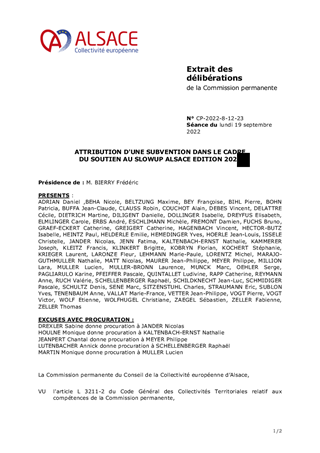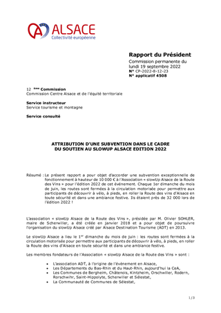 ATTRIBUTION D'UNE SUBVENTION DANS LE CADRE DU SOUTIEN AU SLOWUP ALSACE EDITION 2022