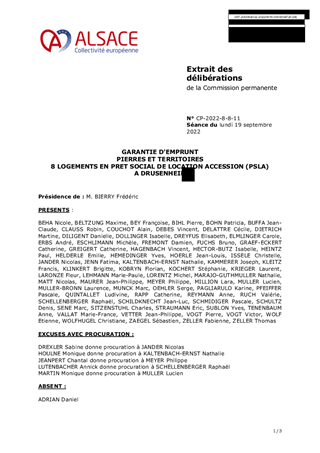 GARANTIE D'EMPRUNT PIERRES ET TERRITOIRES 8 LOGEMENTS EN PRET SOCIAL DE LOCATION ACCESSION (PSLA) A DRUSENHEIM