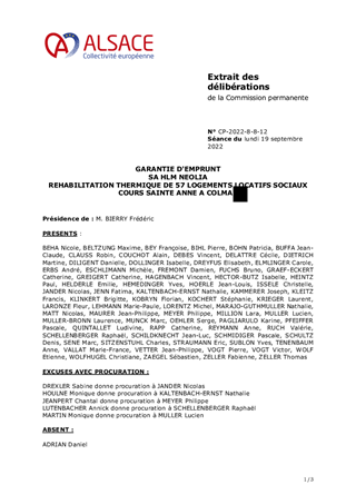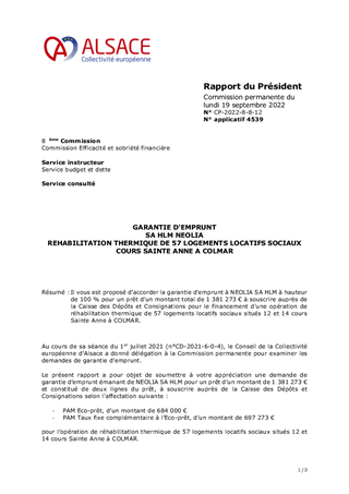 GARANTIE D'EMPRUNT SA HLM NEOLIA REHABILITATION THERMIQUE DE 57 LOGEMENTS LOCATIFS SOCIAUX COURS SAINTE ANNE A COLMAR