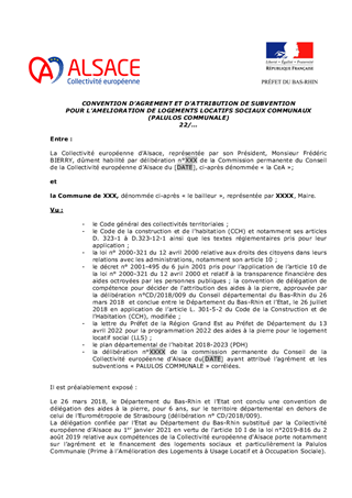 Le présent rapport a pour objet de proposer à la Commission permanente d’attribuer des aides financières ainsi que des agréments aux bailleurs suivants, dans le cadre de la délégation des aides à la pierre de l’Etat et des dispositifs départementaux volontaristes, afin de leur permettre de créer 125 logements locatifs sociaux accessibles aux ménages à revenus modestes et très modestes - la commune de Weiterswiller pour la réhabilitation de cinq logements - DOMIAL pour quatre opérations à Saverne, Haguenau, Sélestat et Châtenois - CDC Habitat social pour une opération à Haguenau - Habitat de l’Ill pour une opération à Erstein - Alsace Habitat pour six opérations à Rangen, Wiwersheim, Kirchheim, Saverne, Val de Moder et Wissembourg Ces logements pourraient bénéficier d’un cofinancement total de 587 300 € dont 240 300 € au titre des crédits délégués de l’Etat (palulos communale et logements PLAI uniquement) et 347 000 € au titre des crédits volontaristes de la Collectivité européenne d'Alsace (création de logements Palulos communal, logements PLAI et adaptation).