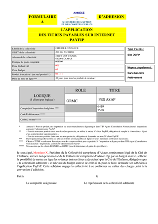 ANNEXE - FORMULAIRE D'ADHESION PAYFIP - CITE DE L'ENFANCE -