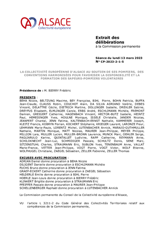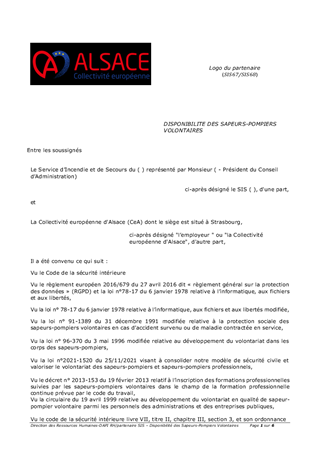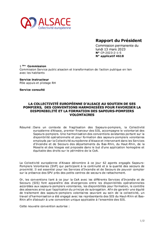 Dans un contexte de fragilisation des Sapeurs-pompiers, la Collectivité européenne d'Alsace, premier financeur des SIS, accompagne le volontariat des Sapeurs-pompiers. Une harmonisation des conventions existantes portant sur la disponibilité opérationnelle et pour formation des sapeurs-pompiers volontaires employés par la Collectivité européenne d'Alsace et intervenant dans les Services d'Incendie et de Secours des départements du Bas-Rhin, du Haut-Rhin, de la Moselle et des Vosges est proposée dans le but d'une application homogène et équitable des droits sur le périmètre de la CeA.