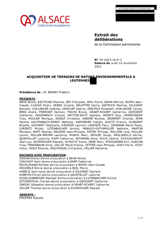 ACQUISITION DE TERRAINS DE NATURE ENVIRONNEMENTALE A LEUTENHEIM
