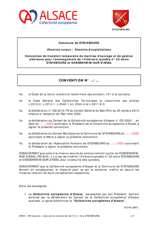 ITINÉRAIRE CYCLABLE ENTRE STEINBOURG ET DOSSENHEIM-SUR-ZINSEL-CONVENTIONS