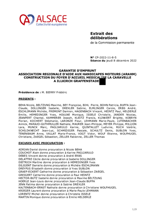 GARANTIE D'EMPRUNT ASSOCIATION REGIONALE D'AIDE AUX HANDICAPES MOTEURS (ARAHM) CONSTRUCTION DU FOYER D'ACCUEIL MEDICALISE LA CARAVELLE A ILLKIRCH GRAFFENSTADEN