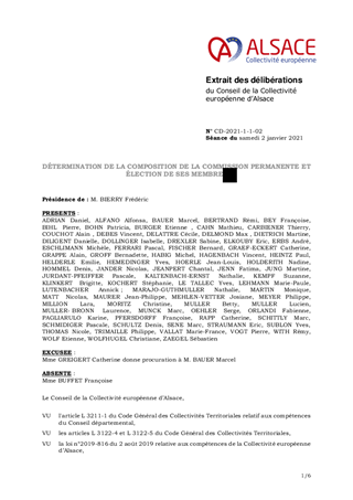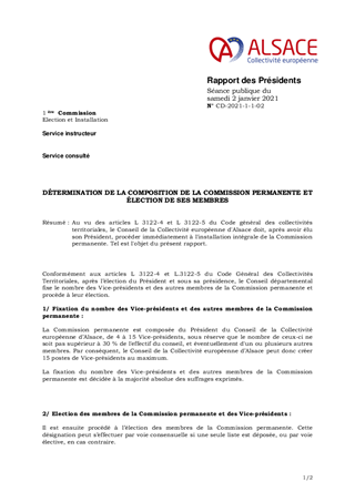 Au vu des articles L 3122-4 et L 3122-5 du Code général des collectivités territoriales, le Conseil de la Collectivité européenne d'Alsace doit, après avoir élu son Président, procéder immédiatement à l'installation intégrale de la Commission permanente. Tel est l'objet du présent rapport.
