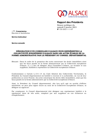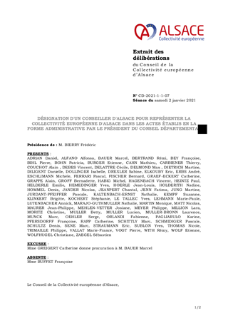 DÉSIGNATION D'UN CONSEILLER D'ALSACE POUR REPRÉSENTER LA COLLECTIVITÉ EUROPÉENNE D'ALSACE DANS LES ACTES ÉTABLIS EN LA FORME ADMINISTRATIVE PAR LE PRÉSIDENT DU CONSEIL DÉPARTEMENTAL